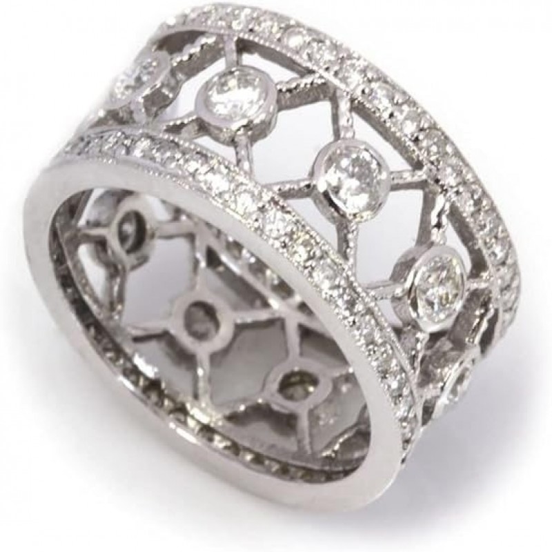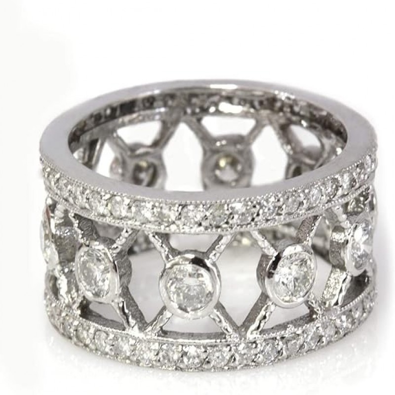 Anello nuziale impilabile in oro bianco massiccio 14k con diamanti naturali da 1,65 ct incastonati s
